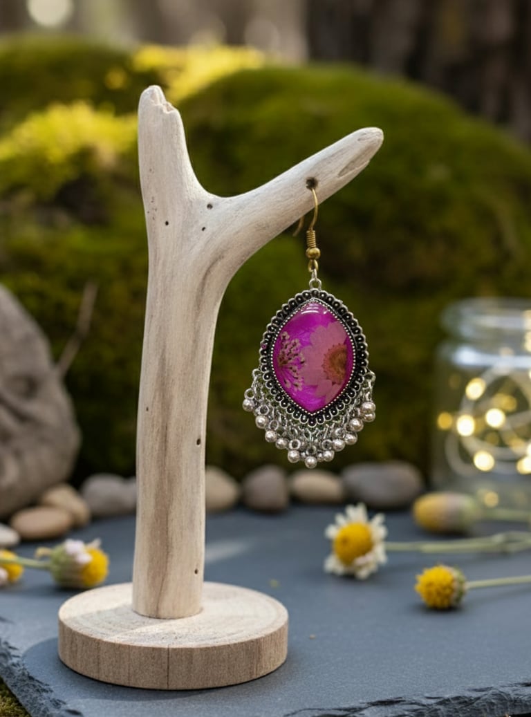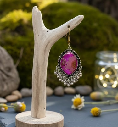 Material: High Quality UV Resin, Real Pressed Flowers, Oxidized Metal Alloy