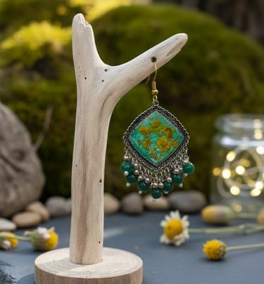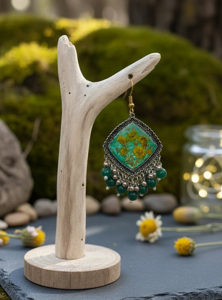 Material: High Quality UV Resin, Real Pressed Flowers, Oxidized Metal Alloy