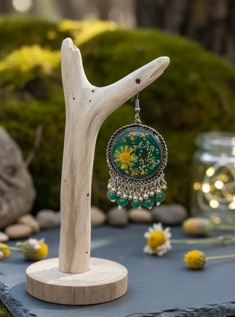 Material: High Quality UV Resin, Real Pressed Flowers, Oxidized Metal Alloy