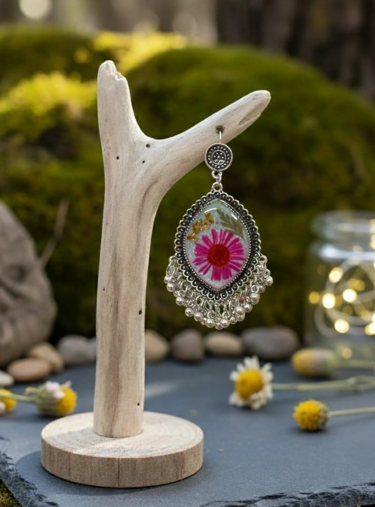 Material: High Quality UV Resin, Real Pressed Flowers, Oxidized Metal Alloy