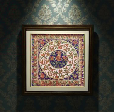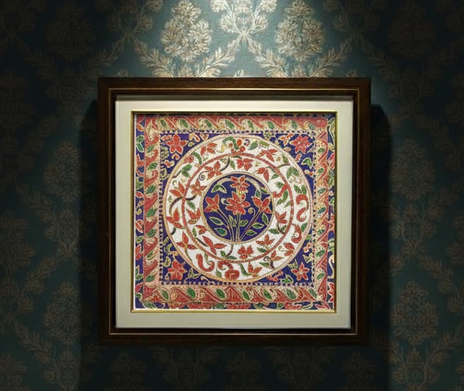 This vibrant Minakari painting radiates with Garhwali soul, weaving lush red and green floral patterns with gold-lined Himalayan motifs. Unlike Varanasi’s formal Mughal legacy, the Garhwal artist draws from mountain blooms and local miniature traditions, infusing the piece with earthy colors and folk energy. Choosing Garhwal roots, this artwork reimagines Minakari, telling a fresh, lively story of region and tradition, distinct from opulent urban styles.