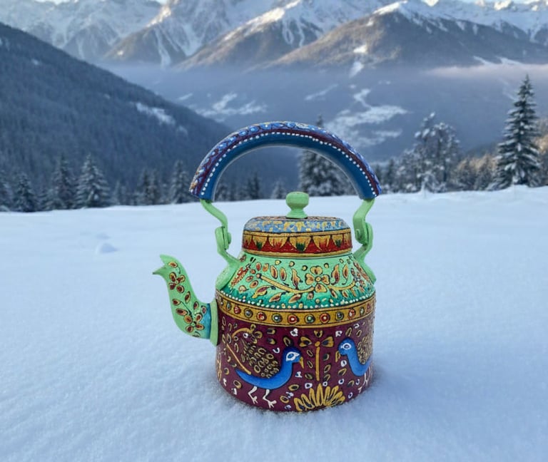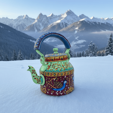 What began in a small corner of her home soon blossomed into soulful creations, hand-painted pieces that carry the calm of the mountains and the warmth of human touch.