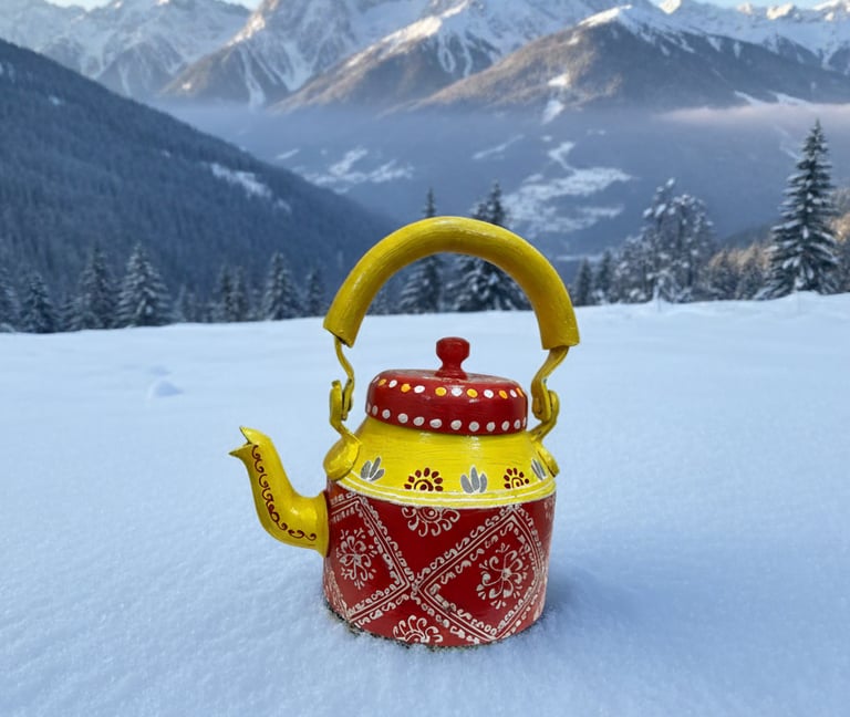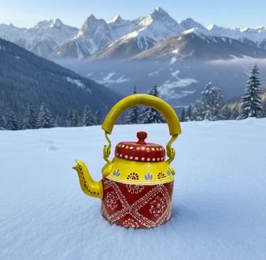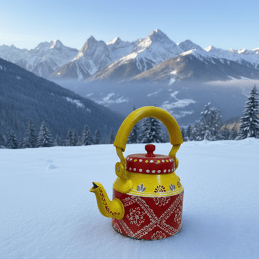 Radiating joy and warmth, The Festival Glow Kettle features bold red and yellow hues, highlighted with traditional folk-inspired patterns. Its vibrant palette and playful designs evoke the spirit of Indian festivities and village celebrations. Handcrafted for decorative purposes, this kettle adds a burst of color and energy to any space, making it ideal to brighten your home. With its rustic charm and lively motifs, The Festival Glow Kettle turns any corner into a vibrant celebration of culture and craft.