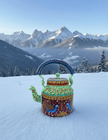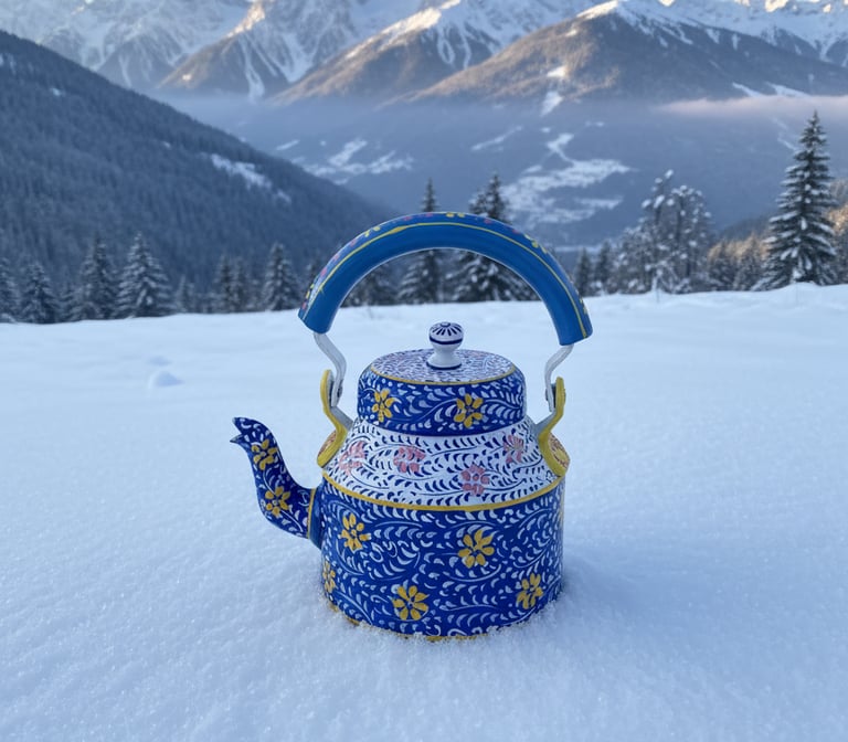 The Whimsical Brews Collection celebrates the joy of imagination through hand-painted decorative kettles that blend artistry with nostalgia. Each piece transforms the humble kettle into a vibrant storyteller, adorned with playful strokes, intricate patterns, and colors that echo the soul of Indian craftsmanship.